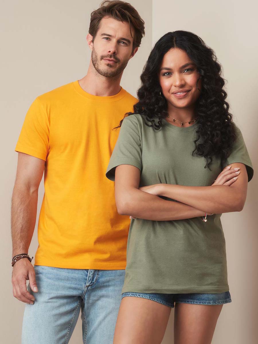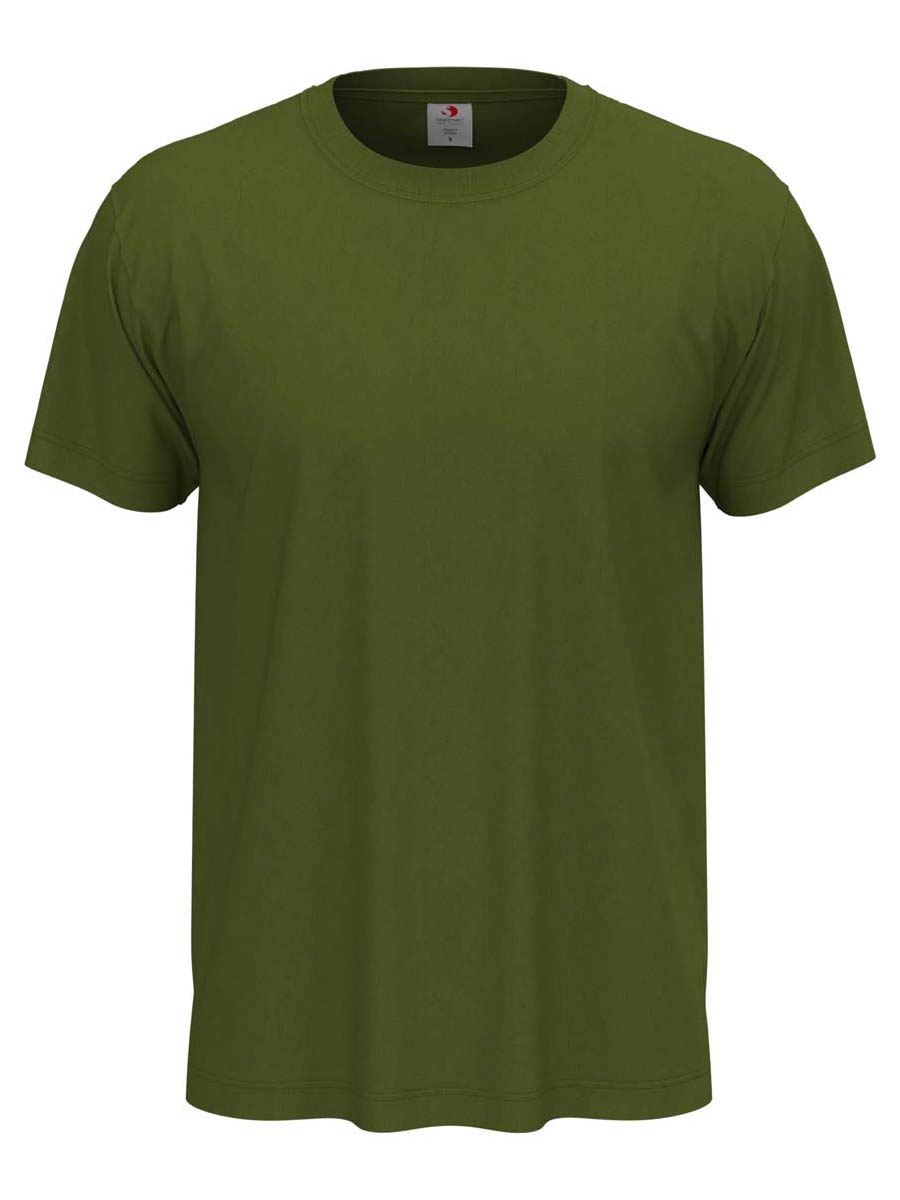 classic bestseller, unisex style – great for both men and women, tear-away label in the collar, taped shoulder to shoulder, Gold (GLD), Military Green (MIL), tubular fabric