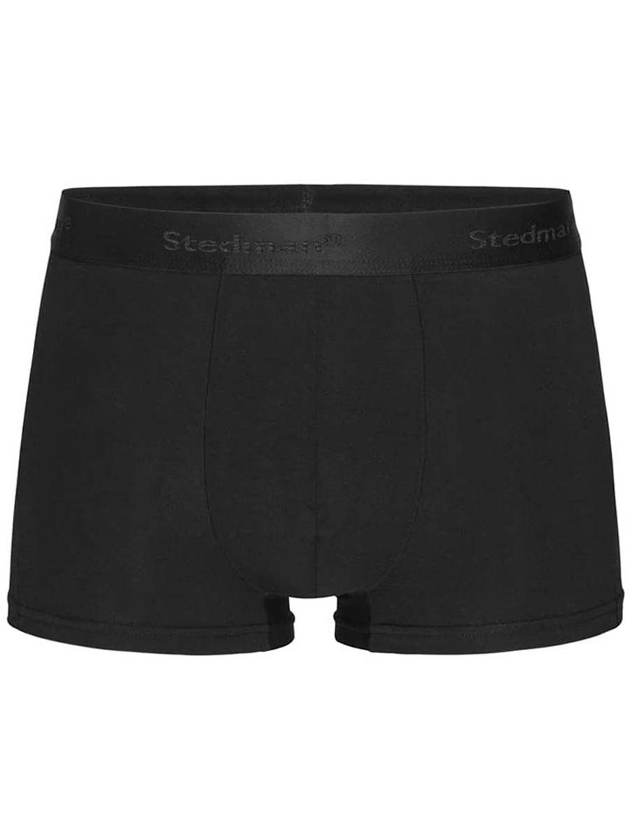 92% ring-spun combed cotton, 8% elastane monofilament; single jersey "full feeder", 2-pack, elastic waistband with "Stedman" wordmark, tear-away care label in the waistband