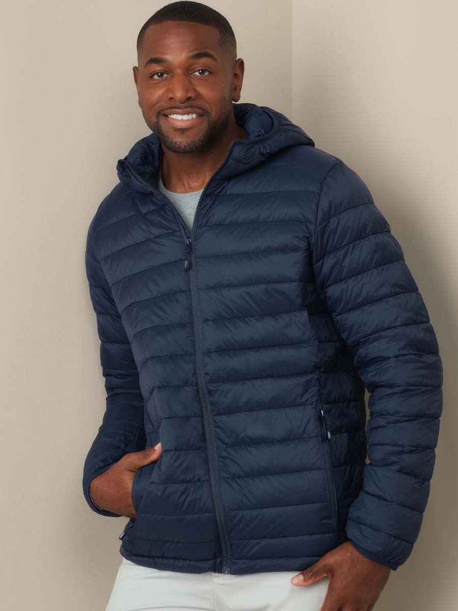 This padded jacket for men offers great heat insulation despite its light weight. With handy "stow-away" function: The jacket folds down into its own inside pocket, saving space on outdoor adventures.