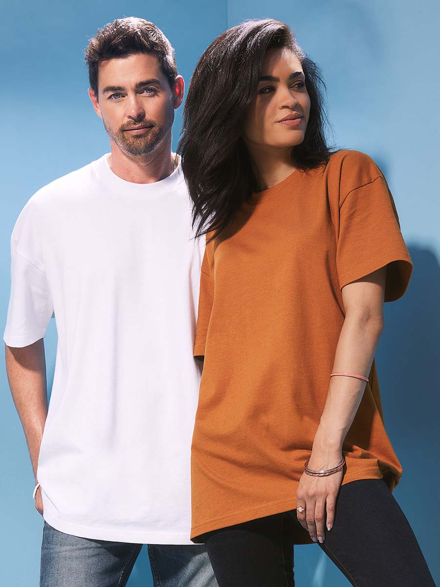 Heavyweight unisex T-Shirt with an oversized fit for the perfect relaxed style. The 100% combed cotton yarn provides a long lasting soft surface and a perfect base for printing.