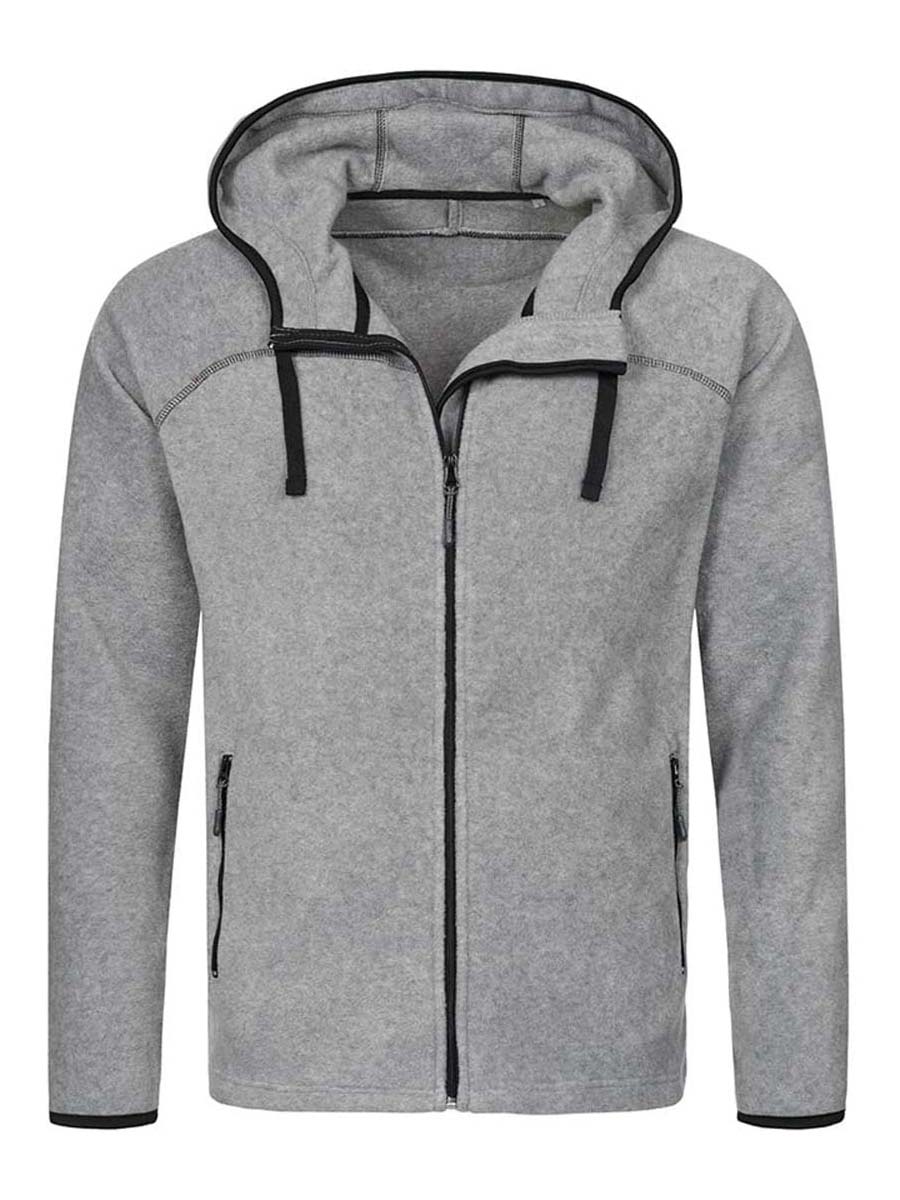 The midweight allrounder! This thick fleece jacket for men offers improved heat-insulating properties and a modern look: narrow contrast bindings, scuba hood and contrast zipper.